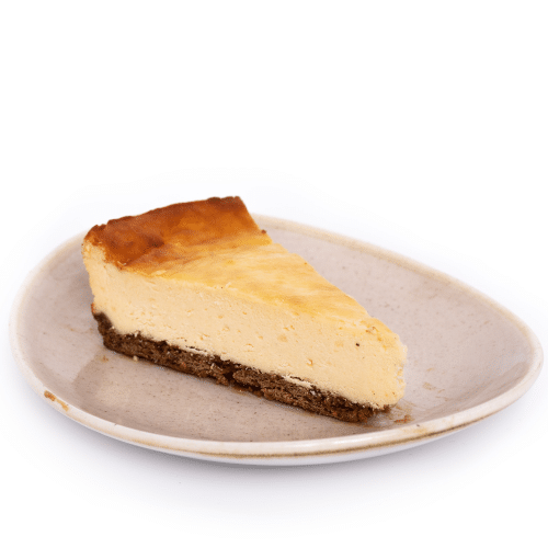 Baked vanille cheesecake op een koekbodem, met wisselende topping